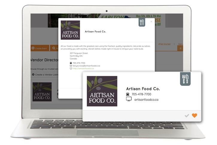 Save this Vendor! Event hosts can easily browse the directory and save your listing as a favourite vendor or pin you to a specific event.